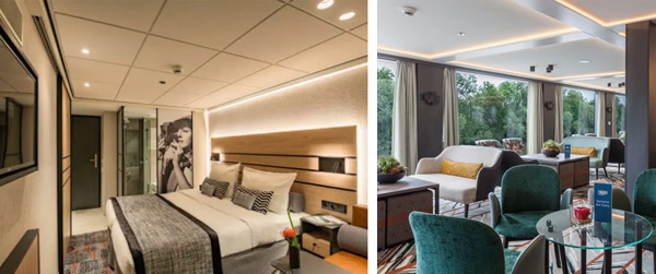 „Ein ansprechendes und modernes Design erwartet dich sowohl in den Kabinen als auch in den öffentlichen Bereichen. Besonders die Lounge und der Gartenbereich mit der Panoramabar bieten ein einzigartiges Ambiente.“