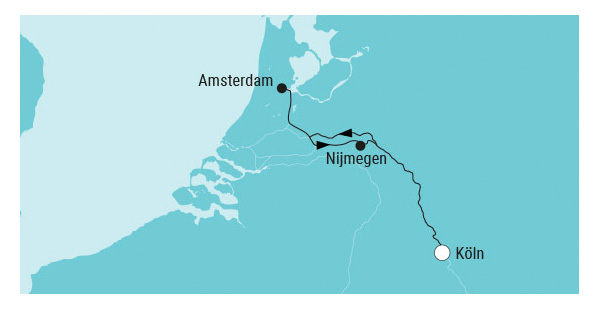 - Route: Köln – Amsterdam – Nijmegen – Köln